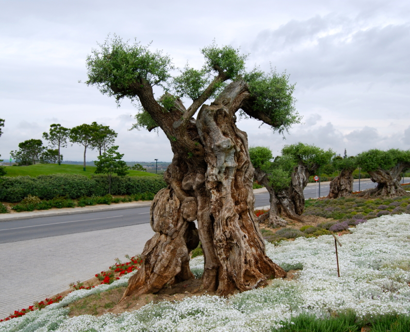 La obras medioambientales ejecutadas por GRUPO RAGA en la Ciudad Financiera del Santander dotaron a sus espacios verdes de una cuidada reforestación y repoblación con especies arbóreas principalmente autóctonas. Durante la primera fase, ejecutada de 2004 a 2008, se plantaron cerca de 400 olivos milenarios, 500 olivos centenarios, 35 olivos toscanos, 1.185 árboles de gran porte y 39.200 arbustos.
