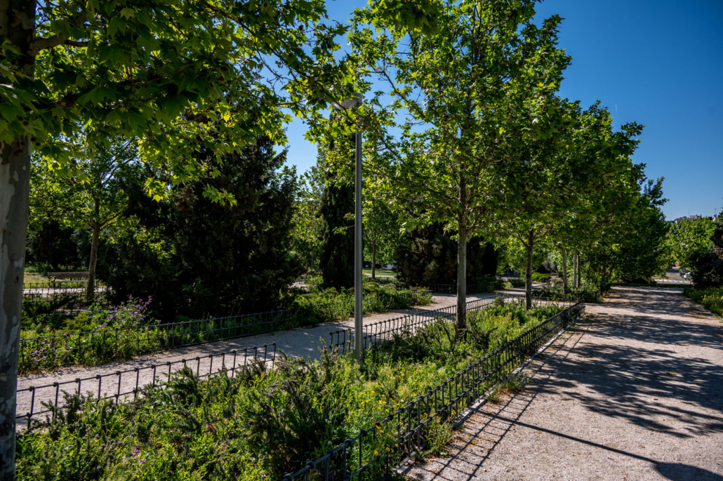 Se realizaron un total de 35 actuaciones que permitieron la creación y mejora de la red de caminos y zonas estanciales, el acondicionamiento de los accesos a las áreas infantiles, nuevas zonas de esparcimiento canino “agility” y equipamiento de mobiliario urbano. Asimismo, para hacer más sostenible su conservación y mantenimiento, se realizó un análisis de las especies vegetales existentes con mayor nivel de supervivencia y se procedió a su reposición con unidades de mayor porte y calibre, y se procedió a la plantación de 13.188 unidades de especies arbustivas y 224 unidades de arbolado procedentes de los viveros municipales.